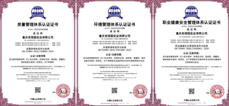 同时,老顽固已获得多项质量认证,从ISO9001质量管理体系认证到ISO14001环境体系认证,再到ISO45001职业健康安全管理体系认证,这些都证明了老顽固在质量管理方面的严谨和卓越。